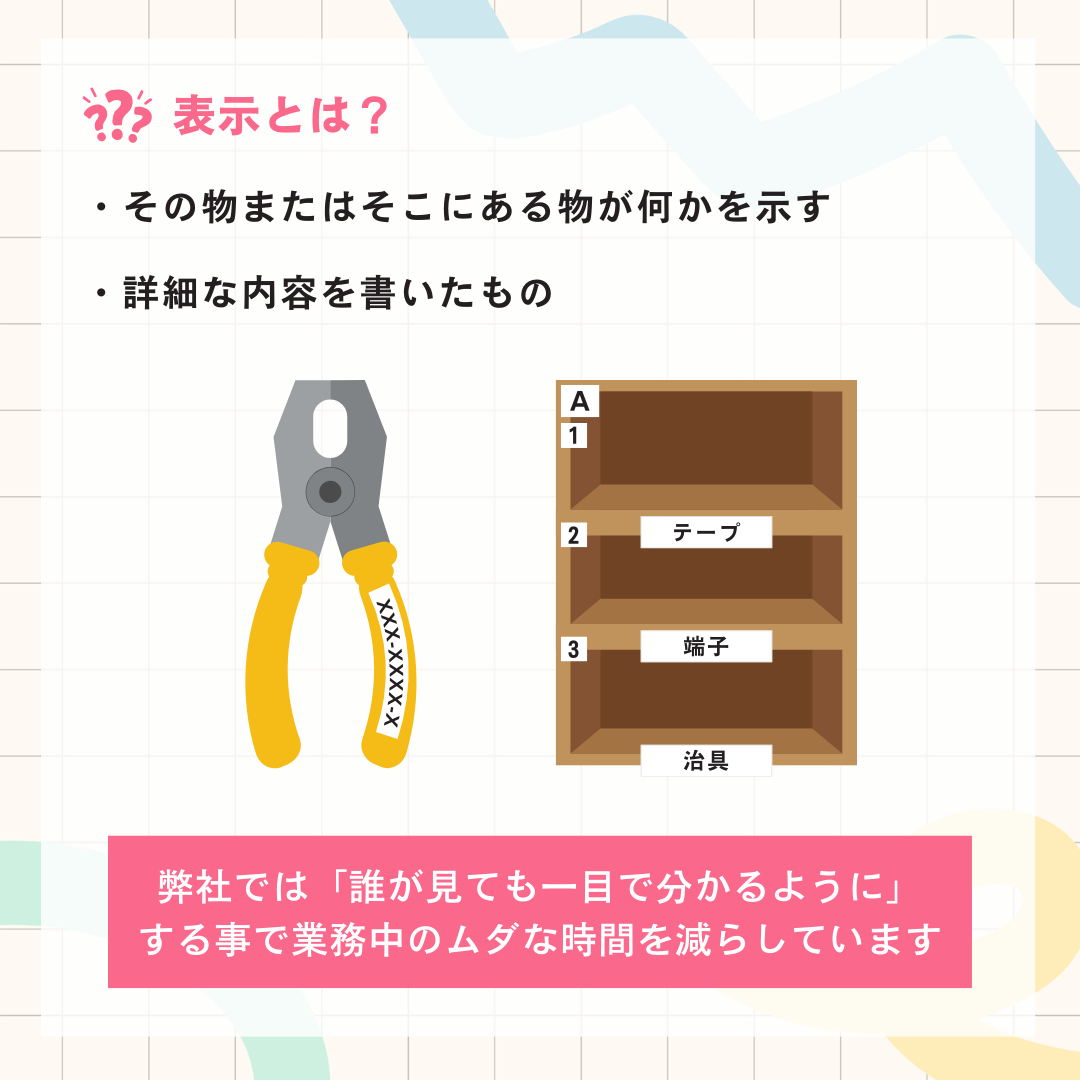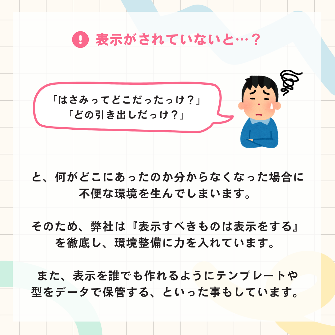 表示作りは弊社が力を入れている環境整備の中でも重要なものになります😊